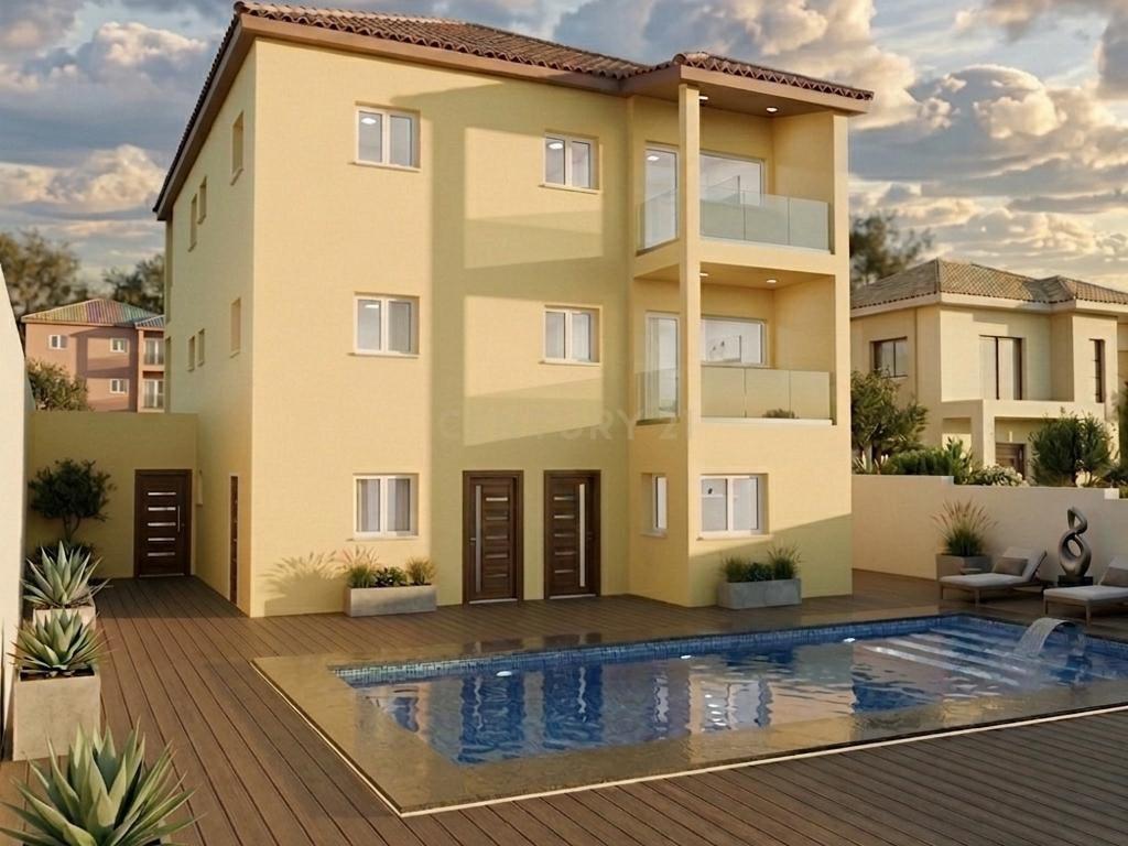 Em zona residencial de moradias no Murtal, encontramos um pequeno condomínio com piscina de apenas 7 apartamentos .